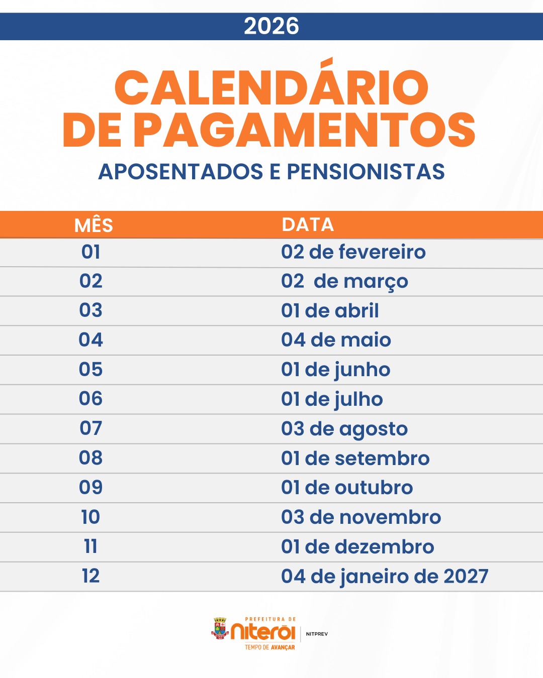 Calendário de pagamentos