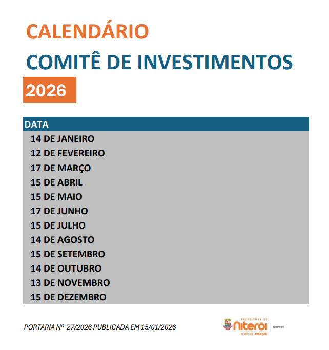 » Decreto Nº 13170/2019 – REESTRUTURA O COMITÊ DE INVESTIMENTOS NO ÂMBITO DA AUTARQUIA MUNICIPAL GESTORA DA PREVIDÊNCIA SOCIAL – NITERÓI PREV E DOS FUNDOS FINANCEIRO E PREVIDENCIÁRIO.